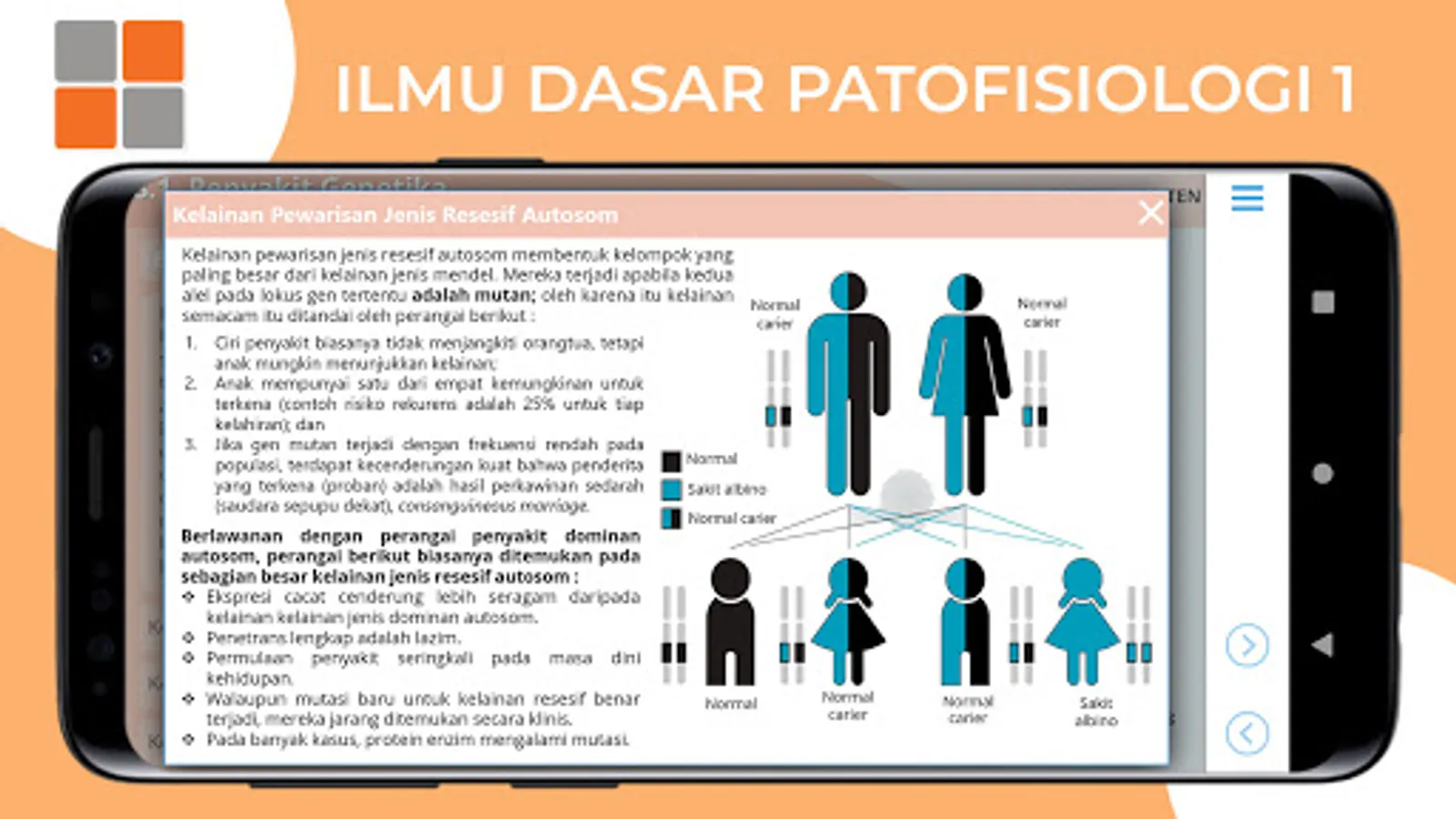 The application "Basic Science of Pathophysiology 1" is an application that contains basic science material of Pathophysiology 1 which is equipped with interactive audio visuals.
