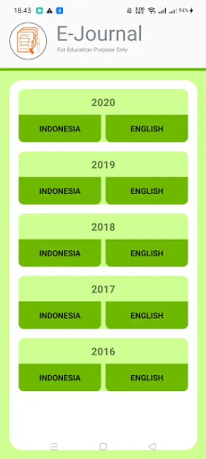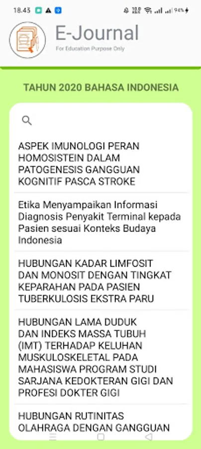 Dalam aplikasi ini jurnal tersedia mulai dari tahun 2015 sampai dengan tahun 2020 dalam bahasa inggris dan bahasa indonesia.