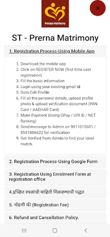 Personal Counseling for all brides and grooms. Facility to find places using Android Mobile App. There is no need to remember the new ID and Password while registering / filling the application form. (You can login through the existing G-mail ID of the Parliament).