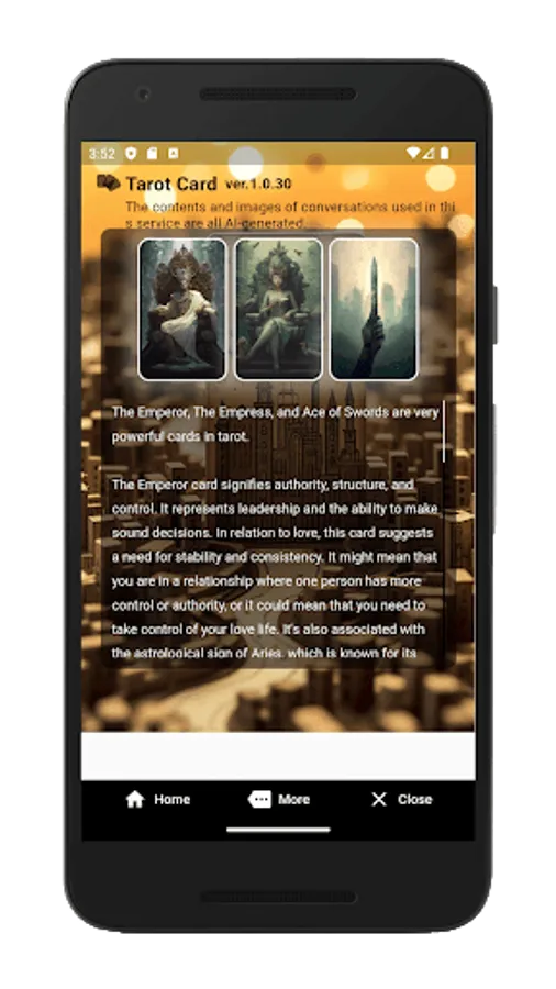 M4 Company에서 AI 기반 타로 앱을 서비스합니다. 최첨단 인공 지능의 힘을 활용하는 저희 앱은 고대 타로 예술과 현대 기술을 결합하여 직관적인 타로 판독 및 통찰력을 제공합니다. 정확성과 삶의 관련성을 모두 보장하는 최첨단 AI 알고리즘으로 구동되는 판독 기능을 통해 타로의 신비에 깊이 빠져보세요.