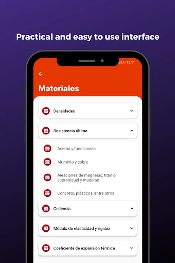 ● More than 40 tables of values of different materials including properties of the most used in engineering