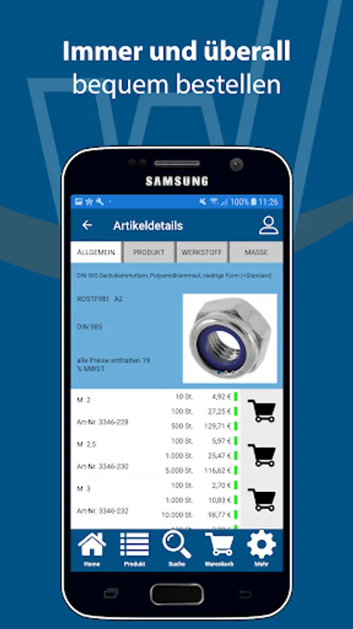 Experience now Wegertseder's screw world on the smartphone. Our complete product assortment divided into the categories screws, nuts, washers, fuses, pins, rods, bolts, rivets, rope, lifting and clamping technology, assortments, building & DIY, tools, hooks, eyes, eye bolts and many more articles for yours Requirement.