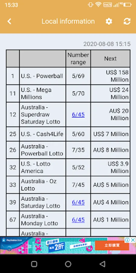 ( Hong Kong , Canada Lotto 649 , Singapore TOTO ... )