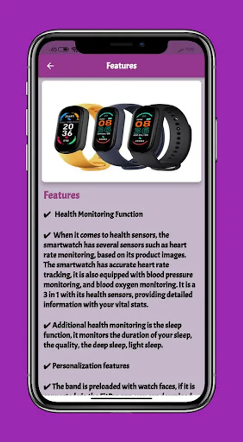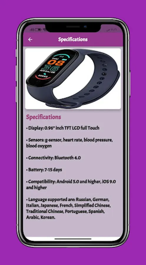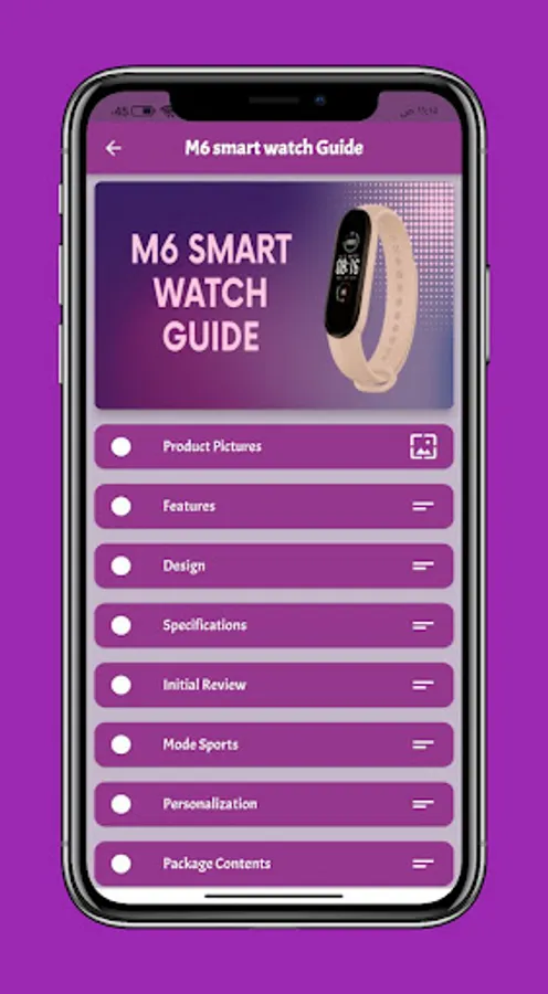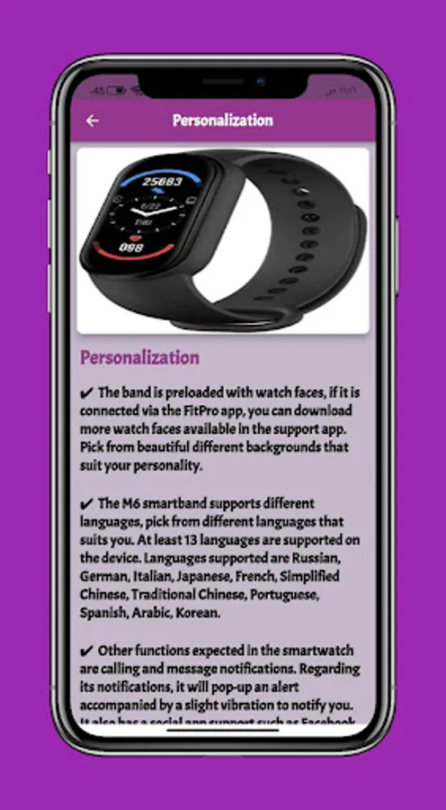 An app M6 smart watch that gives you information about M6 smart watch