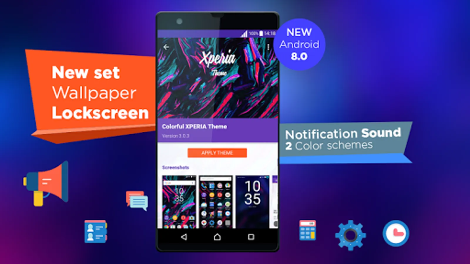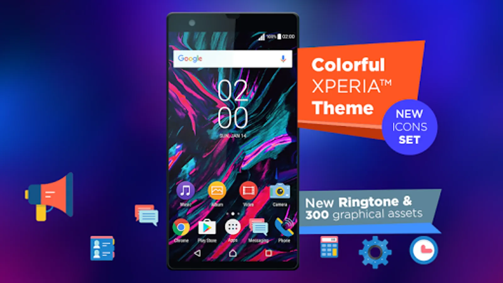 💜 The XPERIA™ Colorful XPERIA theme contains: