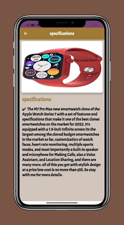 An app M7 Smart Watch that gives you information about M7 Smart Watch