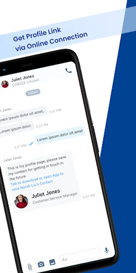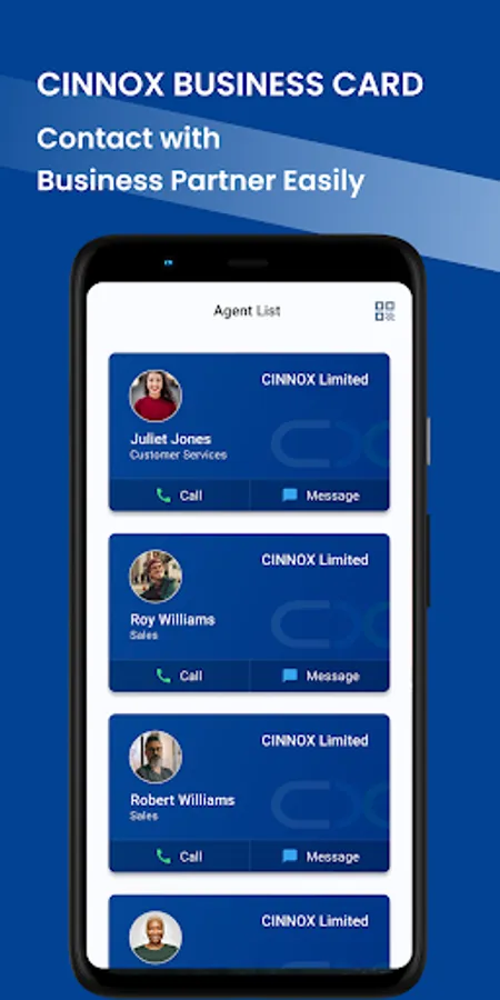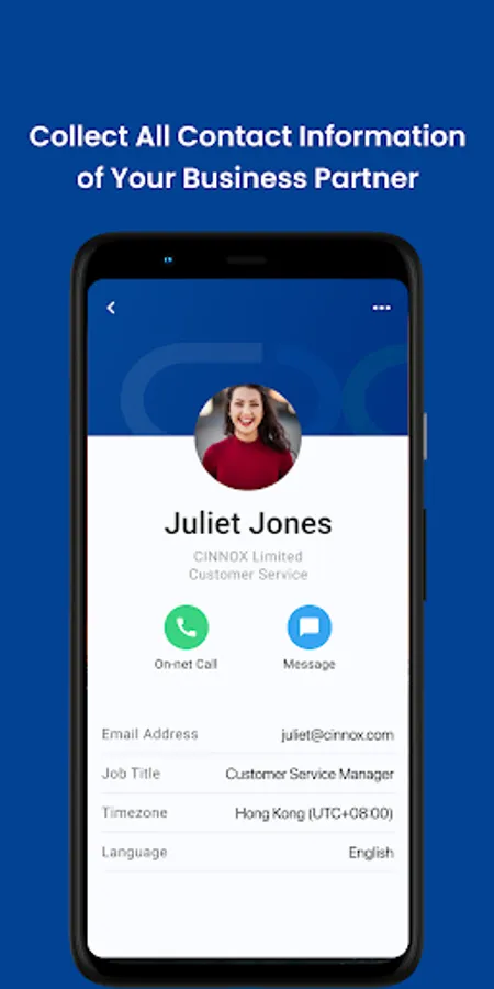First launch for the APP Main functions are Save business partner's contact from CINNOX weblink or widget to the App - Get back to the contact by making online call and chat
