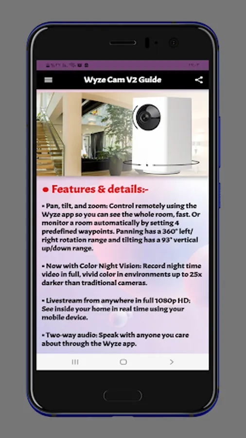 in wyze cam app we supported many sections of content that will let you now more information about wyze cam pan