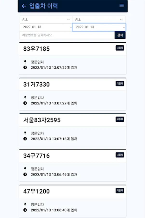 You can inquire the access history of the user's vehicle and registered visiting vehicles.