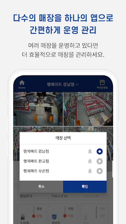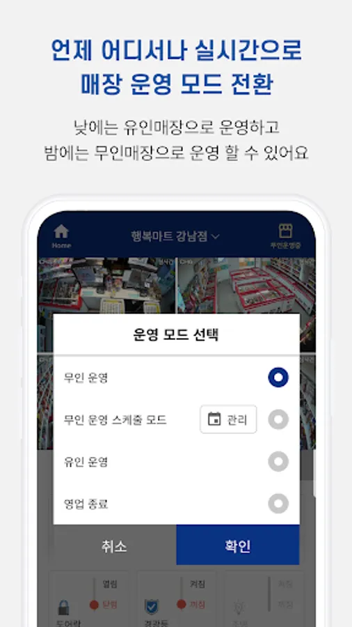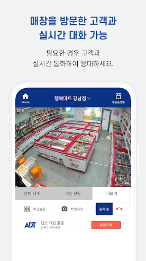 SK Shielders' unmanned safe zone provides video monitoring, device control, sales inquiry, and customer response functions, allowing you to easily operate and manage your store anytime, anywhere, 24 hours a day.