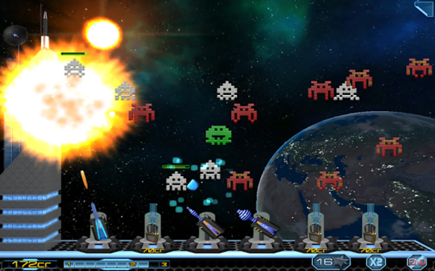 Command an orbital planetary defence platform. Build, upgrade and shoot down the incoming waves of Invaders.