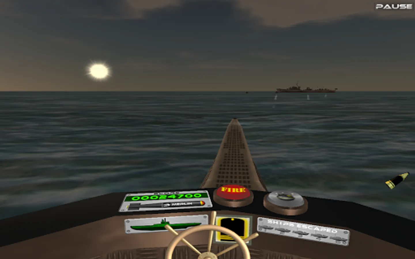 You control a surfaced submarine fighting for survival. Use your 6 Torpedo tubes to launch the devastating Merlin torpedo and sink the enemy ships. Defend against incoming shells, depth charges and enemy aircraft with you deck cannon. Fight day and night with no help coming except for the occasional health drop.
