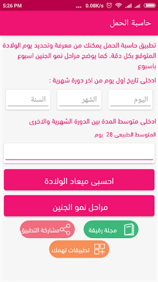 It provides you with a thin magazine that makes it easy for you to get pregnant. The pregnancy calculator helps you know when you are born and how much you know each week of pregnancy and the stages of fetal development every week.