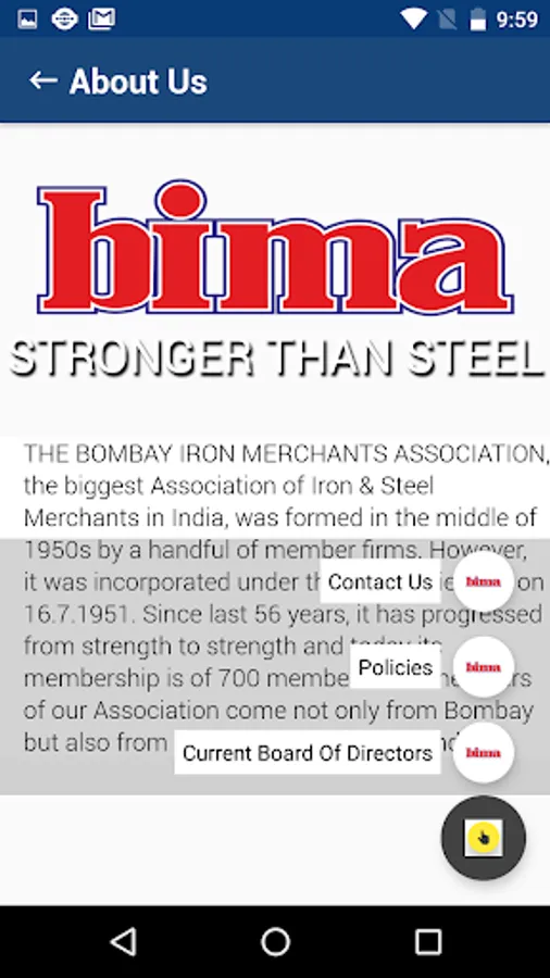 THE BOMBAY IRON MERCHANTS'ASSOCIATION, the biggest Association of Iron & Steel Merchants in India, was formed in the middle of 1950s by a handful of member firms. However, it was incorporated under the Companies Act on 16.7.1951. Since last 56 years, it has progressed from strength to strength and today its membership is of 700 members. The members of our Association come not only from Bombay but also from all nook and corners of India.