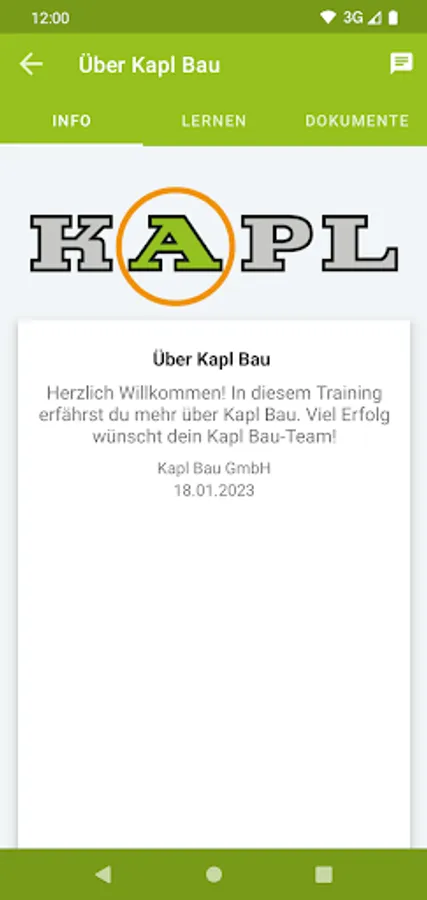 The app is used for further training, instruction and communication for all employees of Kapl Bau GmbH.