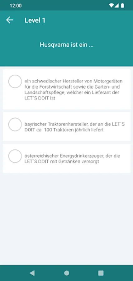 The LET’S DOIT POCKET app uses the micro-training method for digital knowledge transfer. The essence of a wide variety of knowledge is prepared in compact form and deepened through short and active learning steps. An algorithm is used for this in classic learning. The questions are to be answered in random order. If a question is answered incorrectly, it will come back later - until it is answered correctly three times in a row in the learning unit. This creates a lasting learning effect. In addition to classic learning, level learning is also offered. In level learning, the system divides the questions into three levels with different levels of difficulty and asked them at random. There is a break between the individual levels in order to save the content in the best possible way. This is necessary in order to achieve a brain-friendly and sustainable acquisition of knowledge. A final test makes the learning progress visible and shows where possible deficits lie and, if necessary, a repetition is useful.