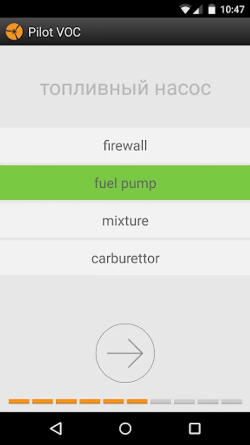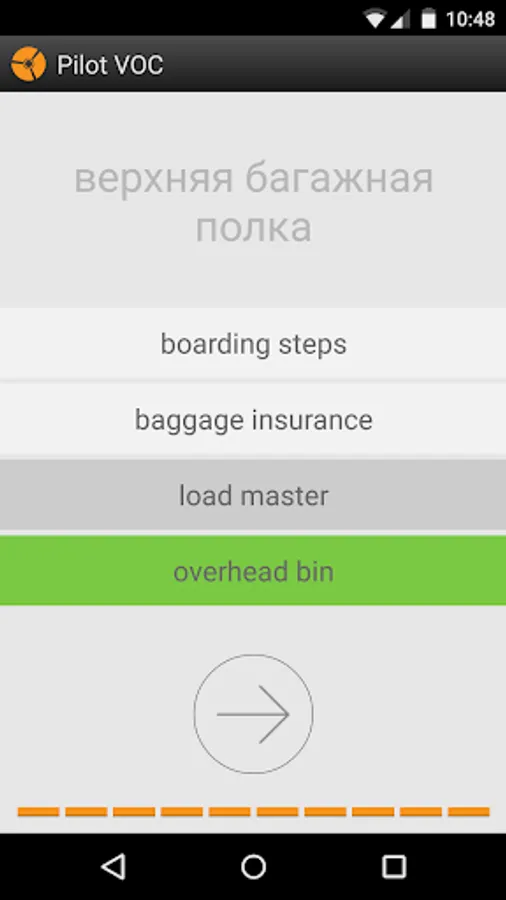 Pilot Vocabulary Trainer RU-EN is an ideal application for training those who want to brush up your vocabulary in the field of aviation, as well as for those who first encounters with a given area: