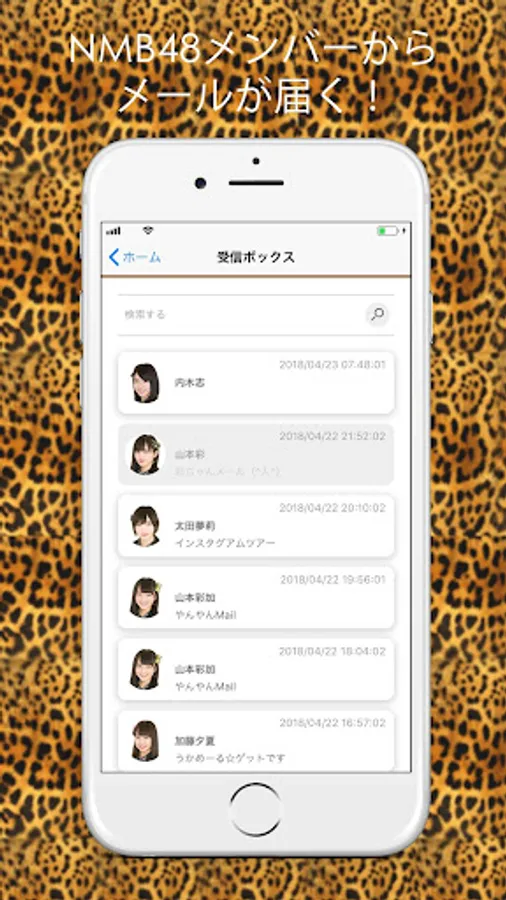 The "NMB48 Mail", reaching an email from NMB48 members, is the official e-mail app for fans. To register your favorite members, tries to receive a personality full of mail!