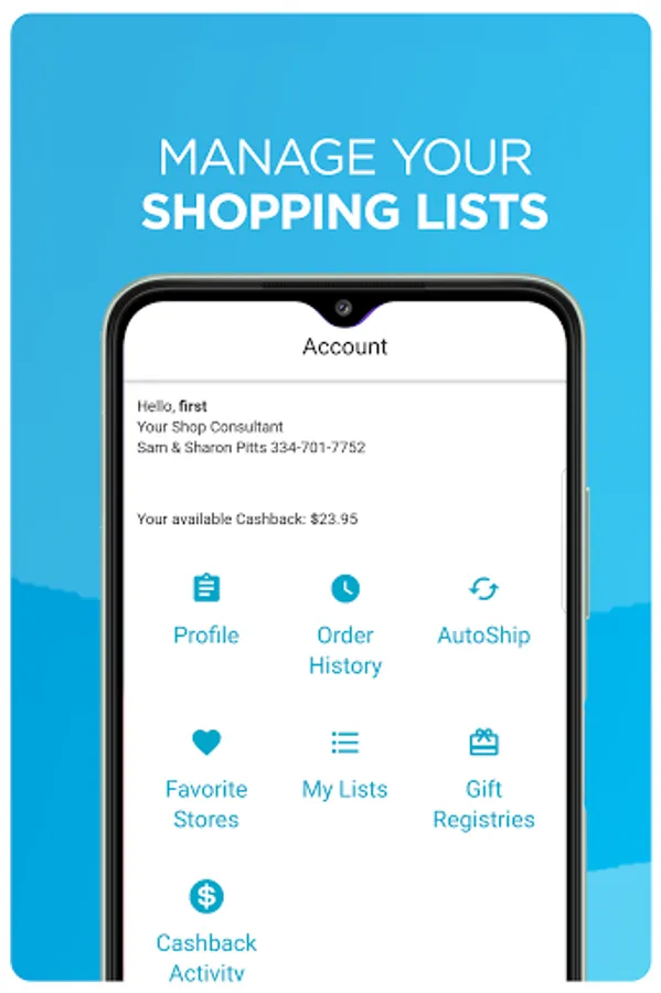 - My account section allows you to view your available Cashback for use on future orders plus adding and deleting shipping addresses and payment methods to speed up future SHOP.COM orders.