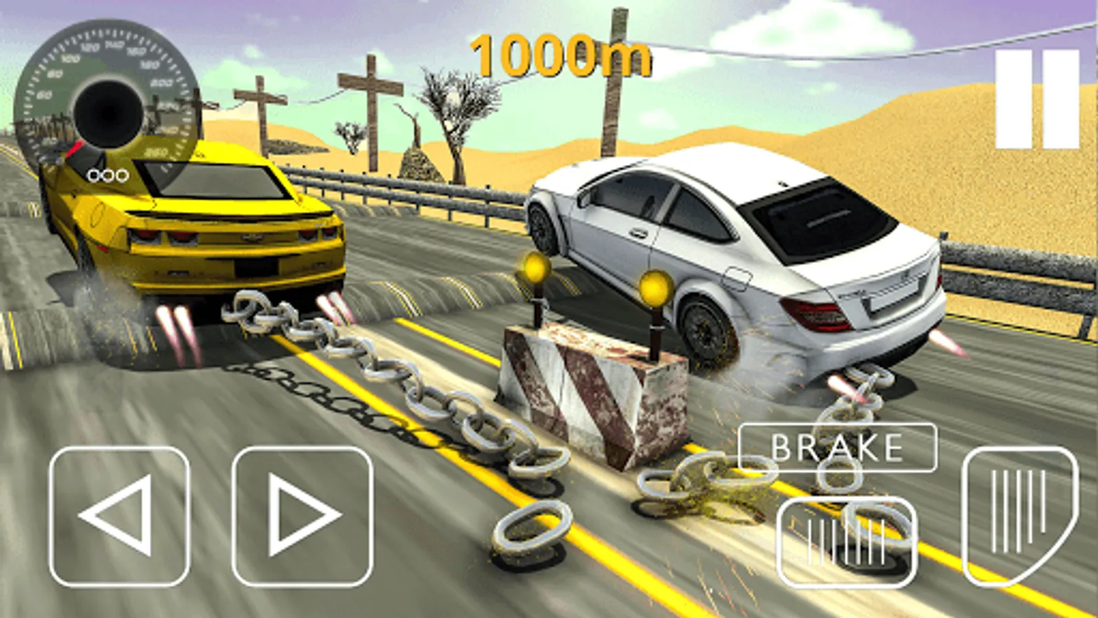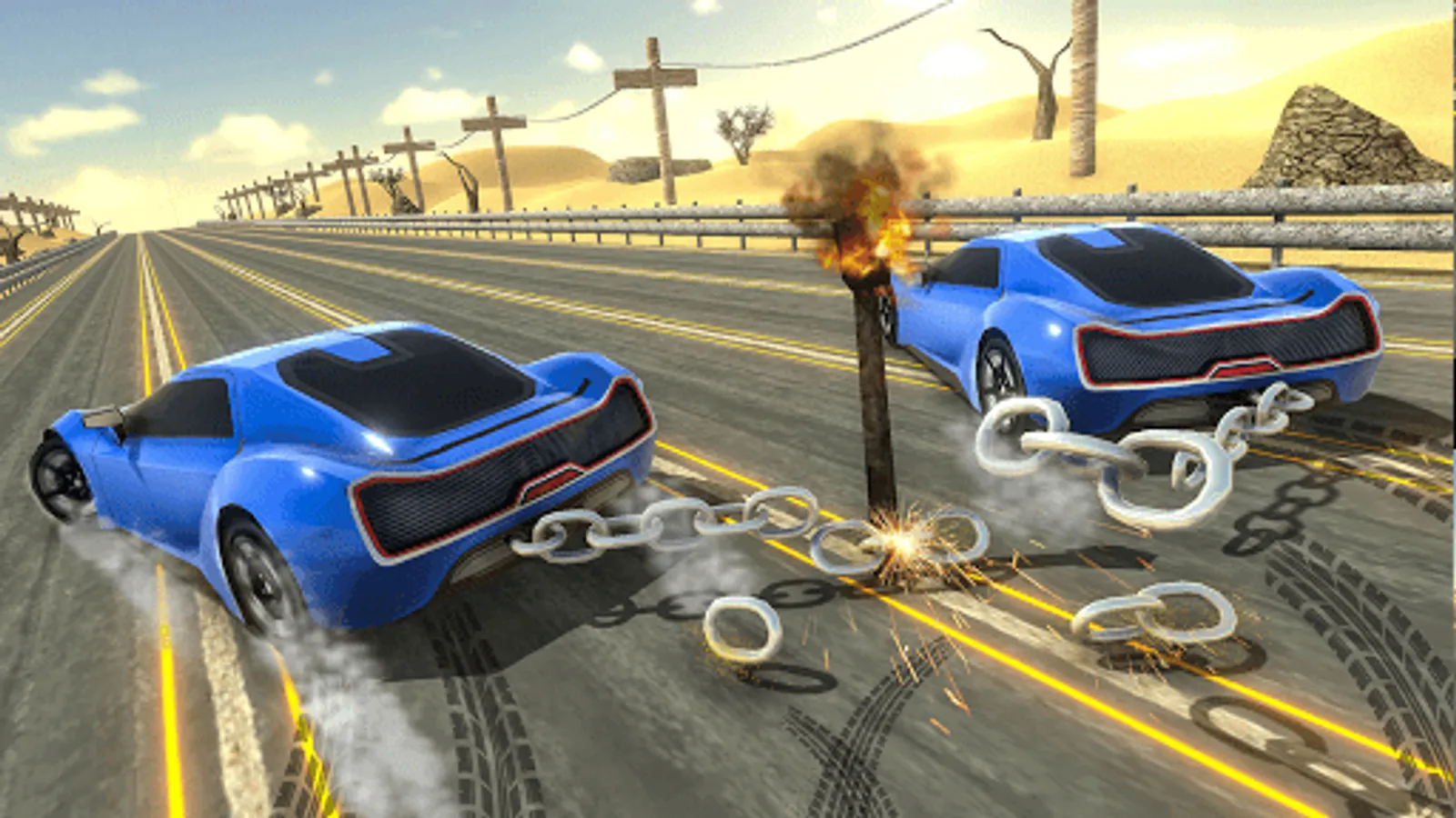 Have you ever wanted to drive crazy like this in free racing games? t's time to drive various sports cars in the city. Chained cars look simple game but it needs special driving skills and perfect car driver to maintain speed before it clashes while racing. Race cars accident simulator Driving crazy chained car games through traffic and reach the destination point safely and show your best driving skills.