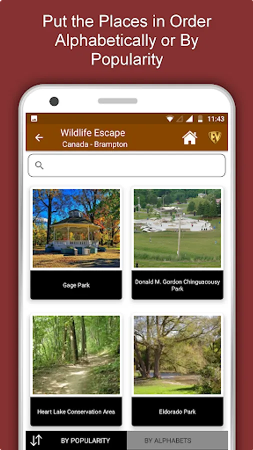* Search - Perform a quick search in the search box to know the famous Wildlife Places quickly!