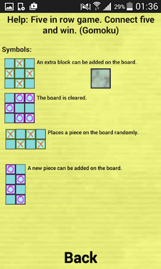 Five in row is often played with a paper and pencil, in this app you can play vs your phone or in multiplayer mode