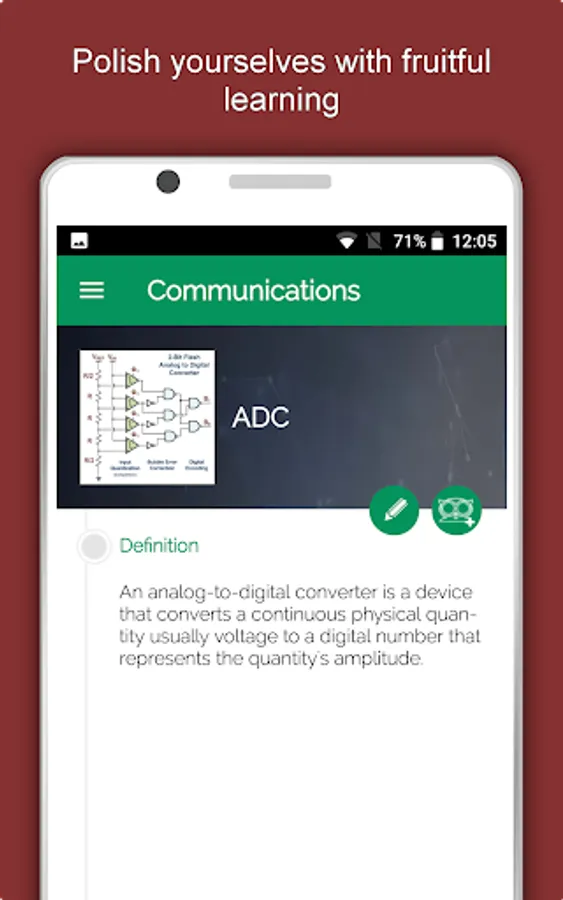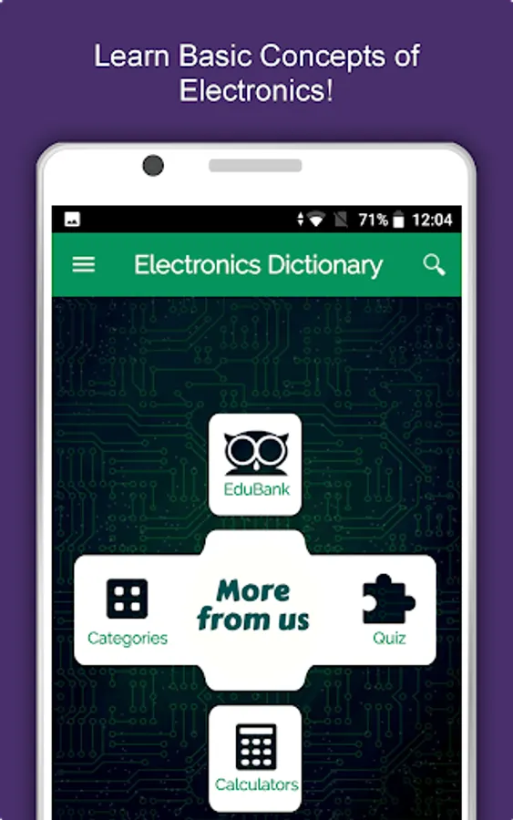Packed with more than 4000 Electronics Terms, various Electronics Calculators and Electronics Formulas, this Electronics & Communications Dictionary App is an extensive guide for all your queries whether you are a student, teacher or an electronic lover. For quick learning this Electronics & Communications Engineering Guide has lots of Electronic Formulas and Equations. This Offline Electronics Engineering App is full of numerous Electronics Quizzes to brush up your knowledge and challenge your learning.