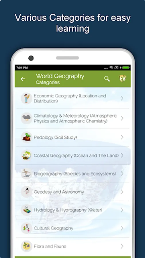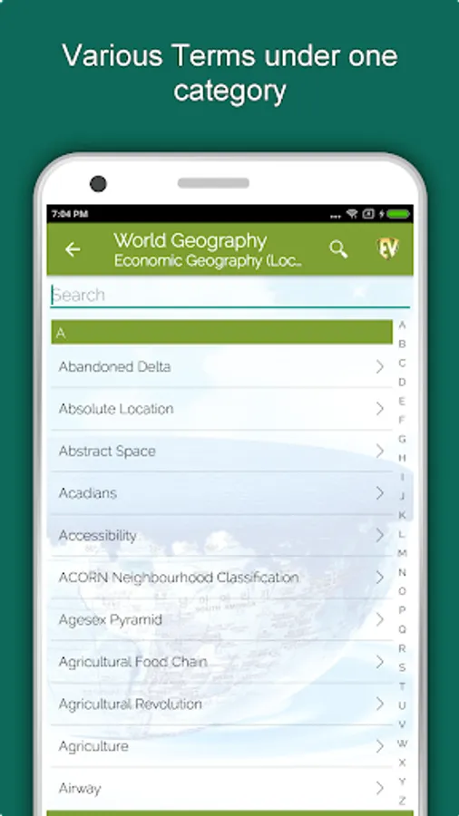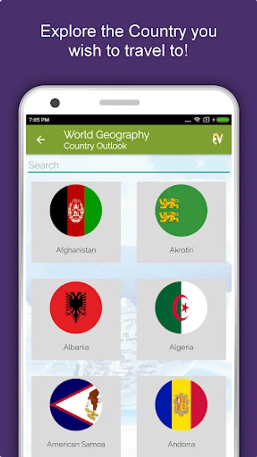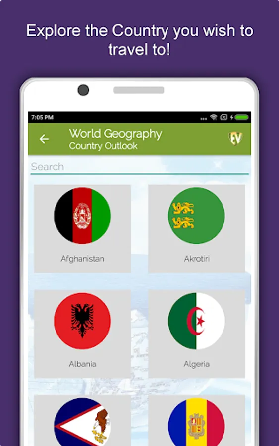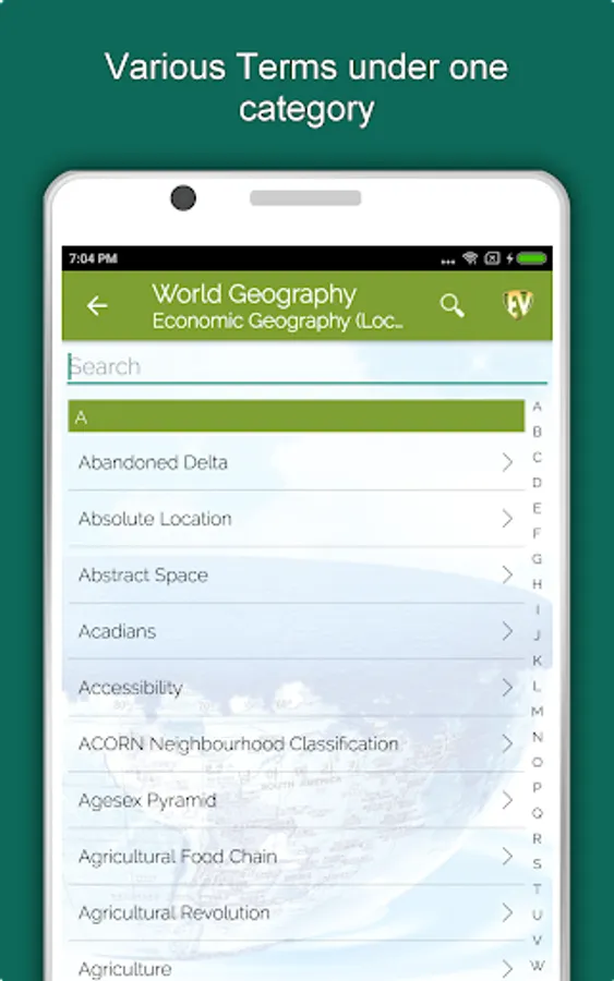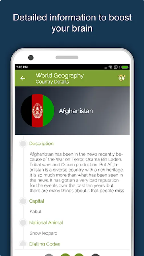 This World Geography Dictionary App provides you more than 5000 Geographical Terms and their respective definitions and meanings with lots of quizzes and puzzles. Geography is easy as you can find the Country Facts and Outlook like capital, region, continent, official language, coastline, land, water, irrigated land, dialing code, airports, seas, currency, description, fact, facet, map, flag etc. with this World Geography App.