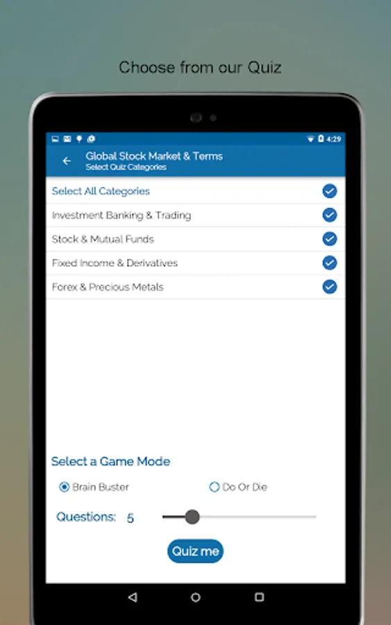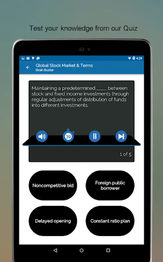 • Quiz- Play quizzes around the different areas of stock market.