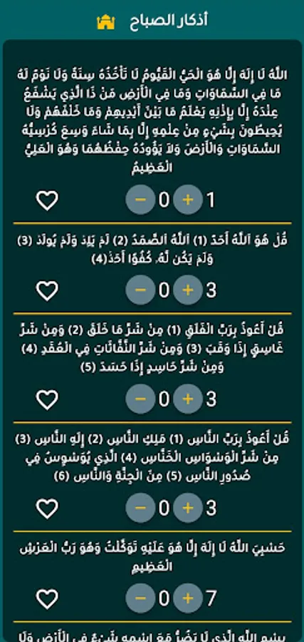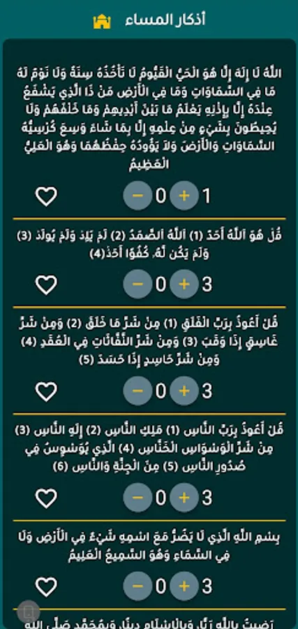 تطبيق أذكار الصباح والمساء وليست كل الاذكار وانما بعضها حتي يكون الامر سهل ، وهناك بجانب كل ذكر عداد يمكنك من احتساب عدد المرات وأيضا هناك خانه يمكنك الضغط عليها عندما تنتهي من الذكر.