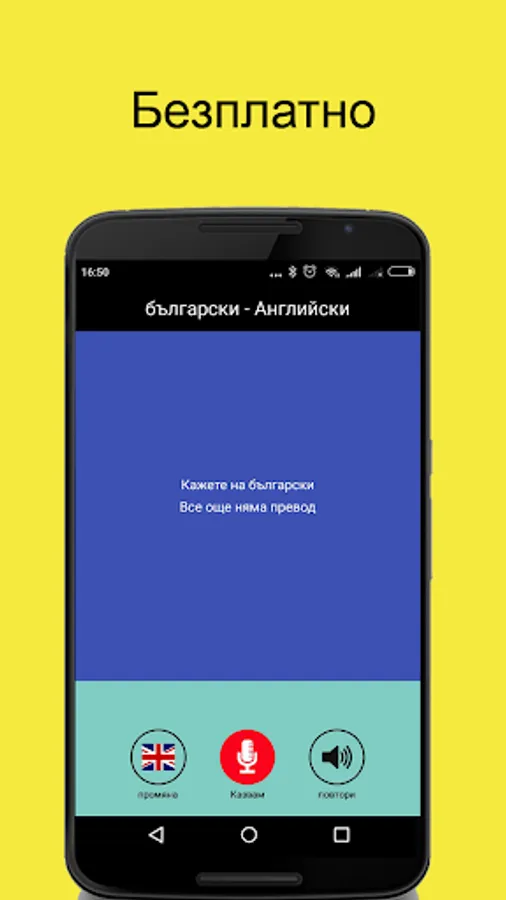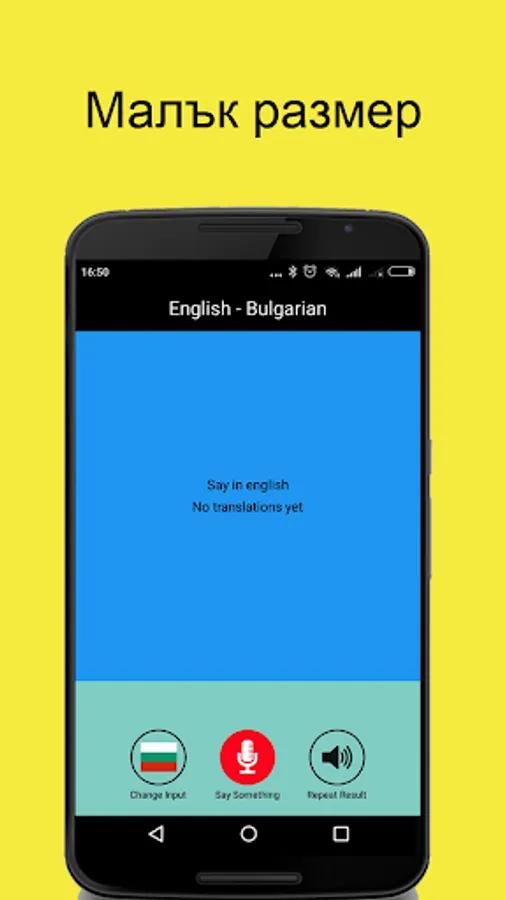 Say something to the Bulgarian and the application will be translated into English by writing output and sound.