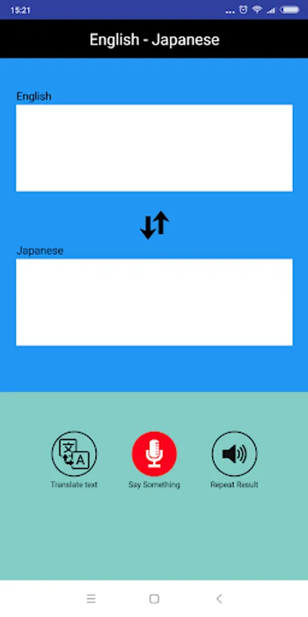 Conversely, the other person can say something in English, and the application will be translated into Japanese by text output as well as voice.