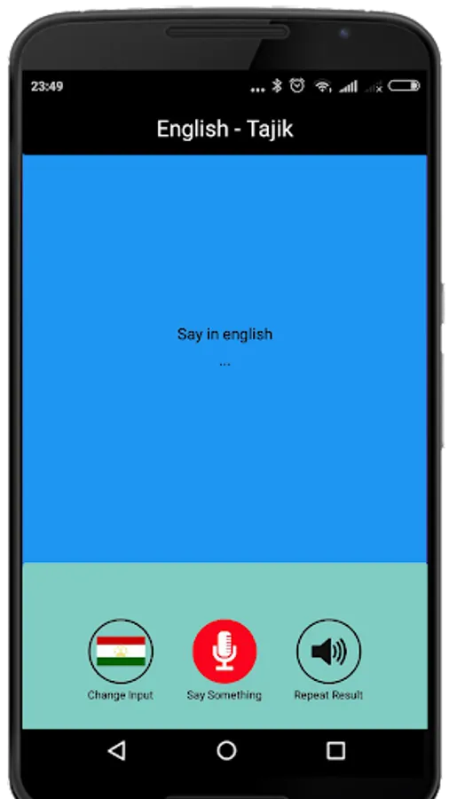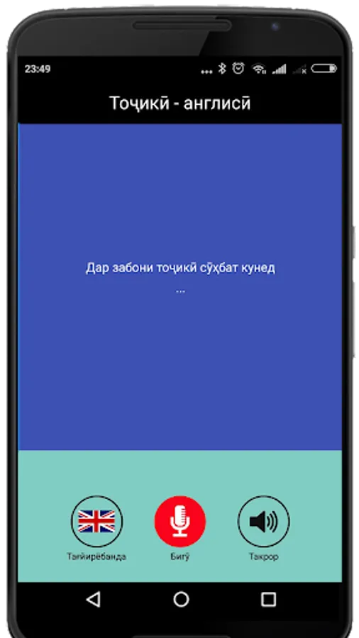 Say something in Tajik and the app will translate into English with text and sound output.