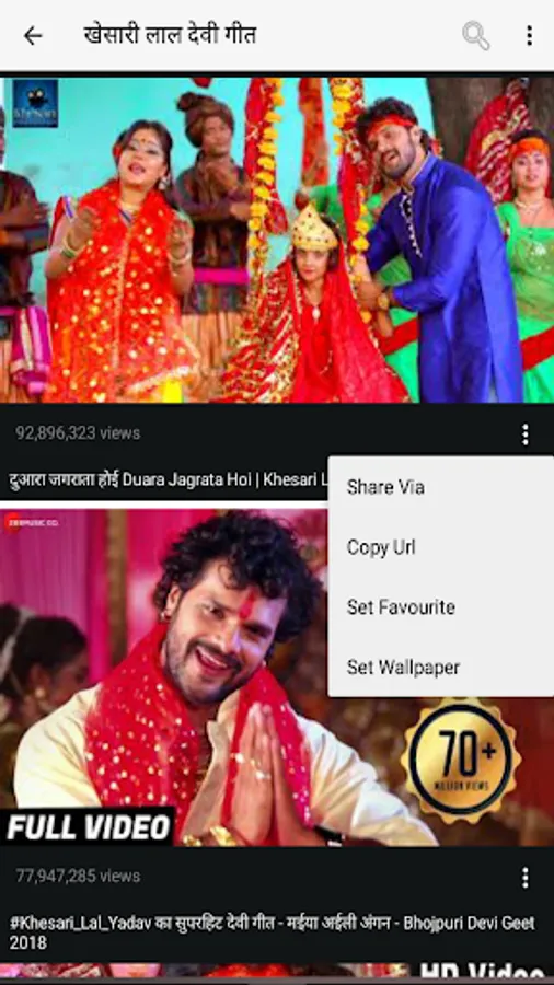 Durga Maa songs app gives you a choice to share your favorite song with friends or family anytime anywhere with easy interface. you can also set wallpaper, share video links with your friends and family using social media platforms.