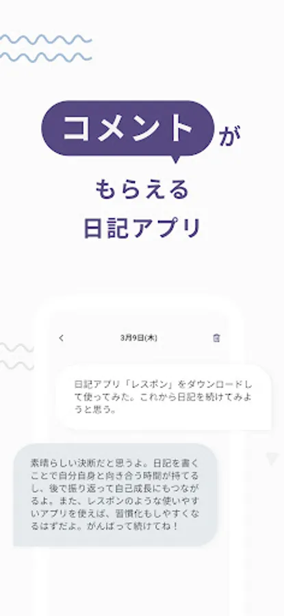 レスポンは、『AIによる自動返信機能が備わった日記アプリ』です。