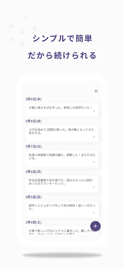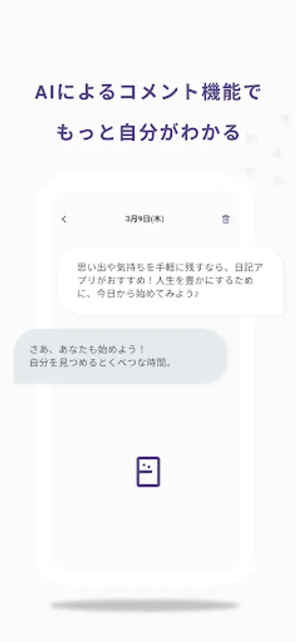 あなたが書いた日記に対して、AIが自動的に返信。自分の気持ちや思いを打ち明けることで、AIが適切な返信をしてくれるため、自分自身と向き合うきっかけに。