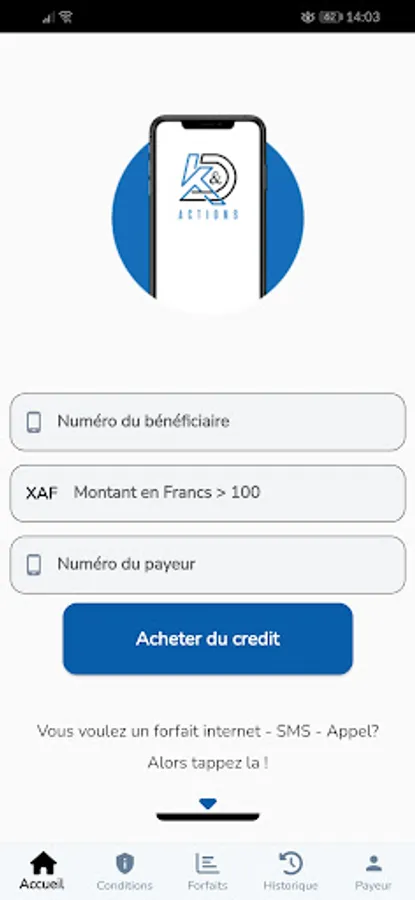 KDMobile is an application that allows you to buy internet credit or Camtel internet packages online via orange money or mtn mobile money payment operators