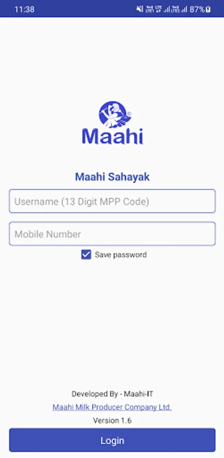 This Application is only use for Maahi Milk register Sahayak. They can login with their MPP code along with registered mobile no. Sahayak can show their MPP's day to day milk pouring data with notification & alerts. Sahayak can also register their Equipment complaint & close from app.