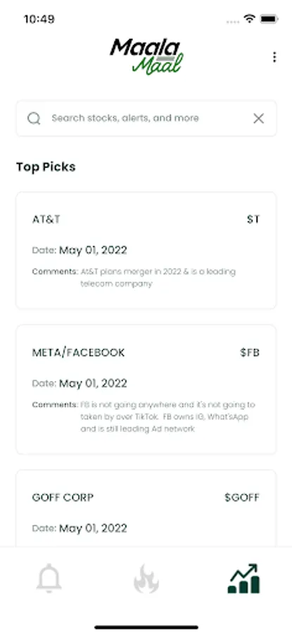 Join thousands of Nepali traders who never have to again look for stocks or options to trade. We take all the hard work out of trading in the stock market. With Malaamal App, you get everything you need to start making profitable trades daily. Get alerts about stocks and options on your app, SMS message, and email.