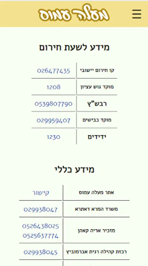 In the app you will find the residents' phone numbers as well as important general information for the residents of Ma'ale Amos.