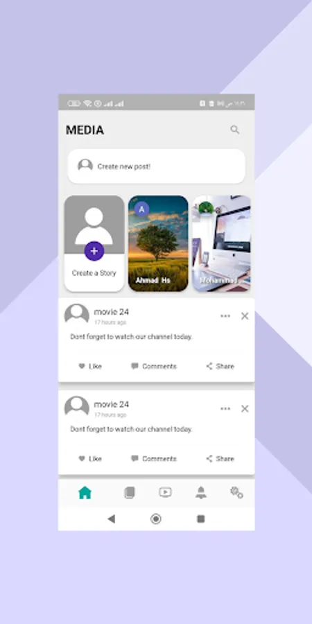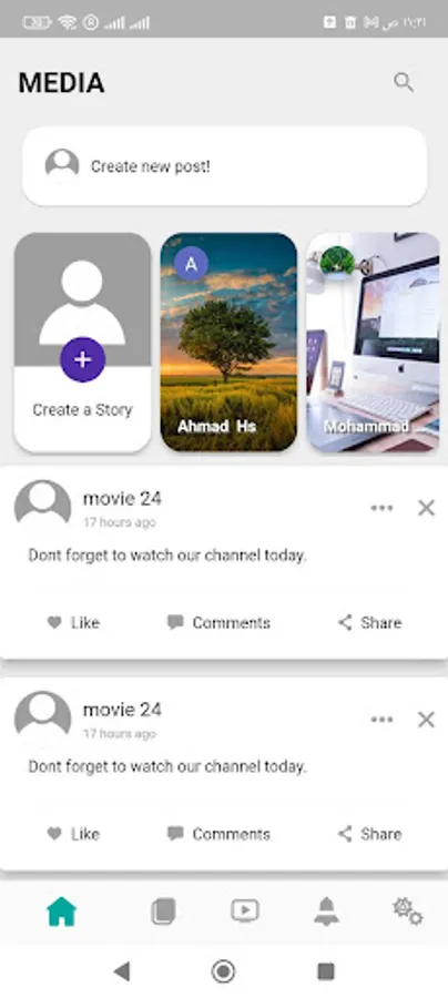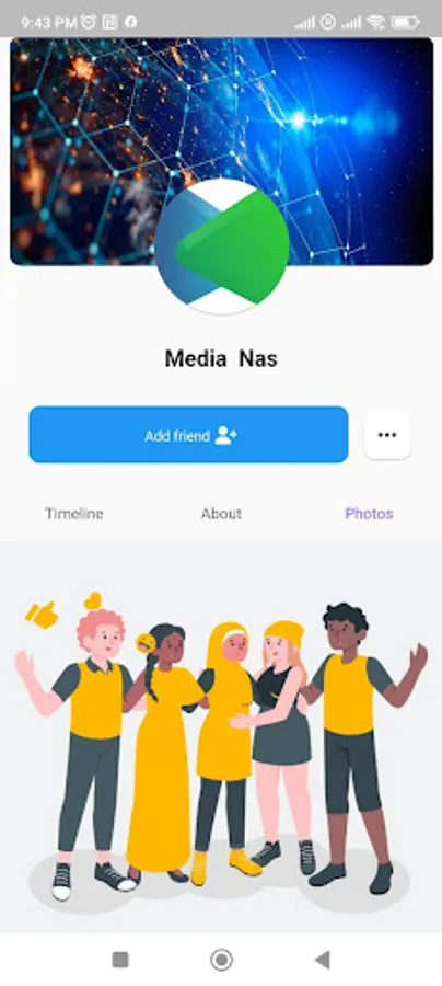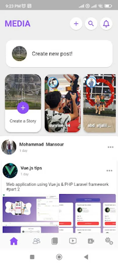 contains many features like create post, story, page and add friends.