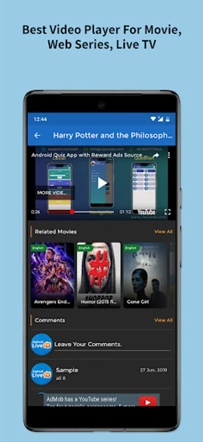 WOW flix is an android application through which you can easily watch movies, web series, live TV for free. Every video player in this application is designed very responsively and you don't have to wait for all videos to play because the video plays at a super fast speed.