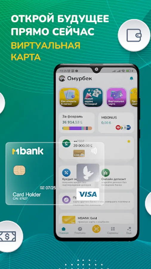 7. Бесплатное пополнение MBANK в более 10 000 терминалах, а также через электронные кошельки партнеров по всему Кыргызстану.