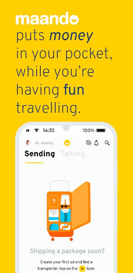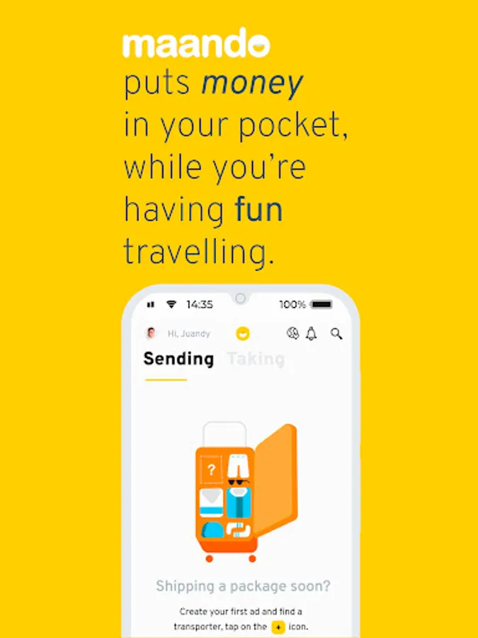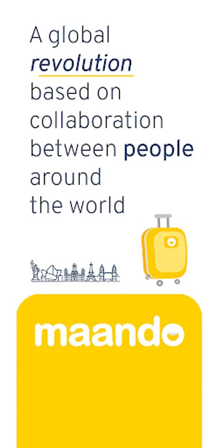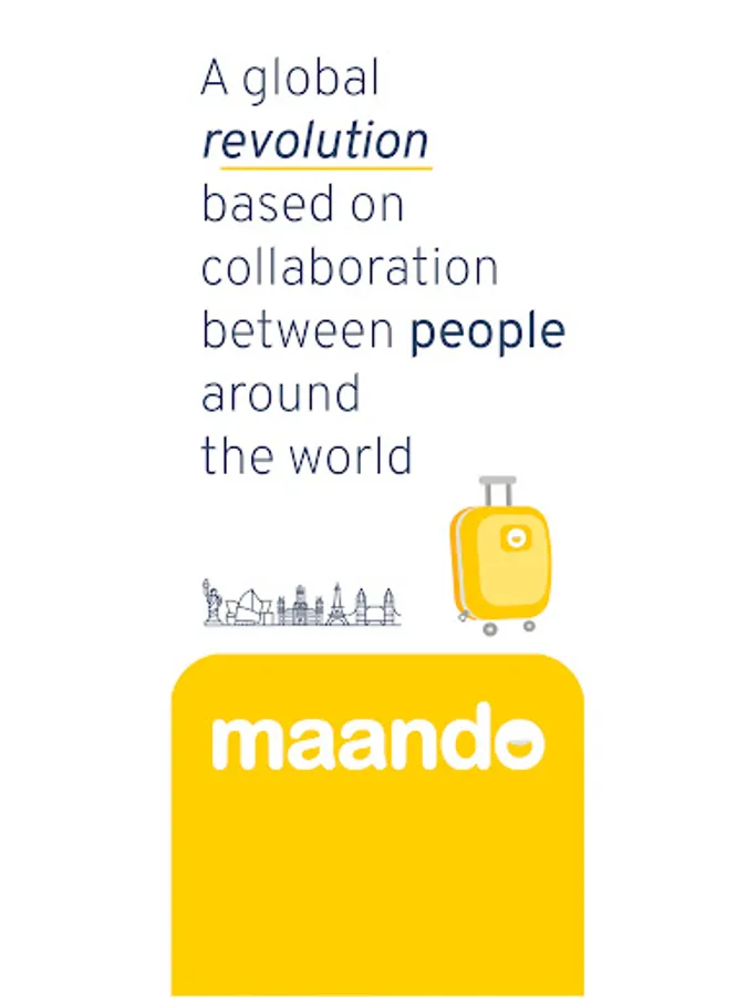 Maando is the largest collaboration platform on the planet. We send packages between people who travel from one place to another. If you ever dreamed that your packages would arrive to another destination in less than 24 hours; earn money while traveling; know places where you have never been able to go; then this is the time to be part of our community.