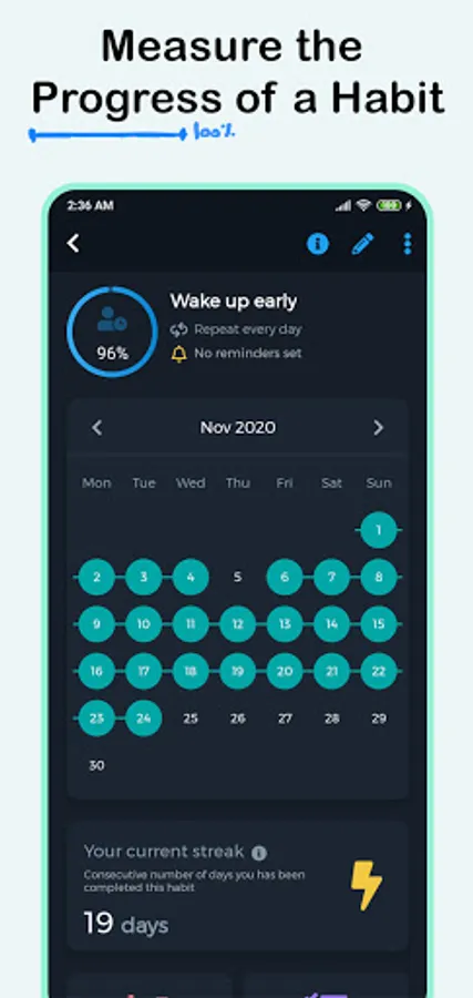 Habit360 helps you to maintain a long streak. These streaks that you build will motivate you to keep moving forward.