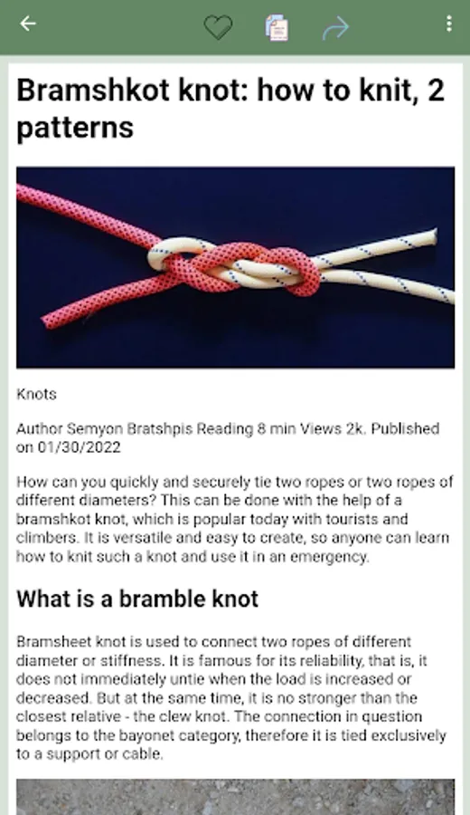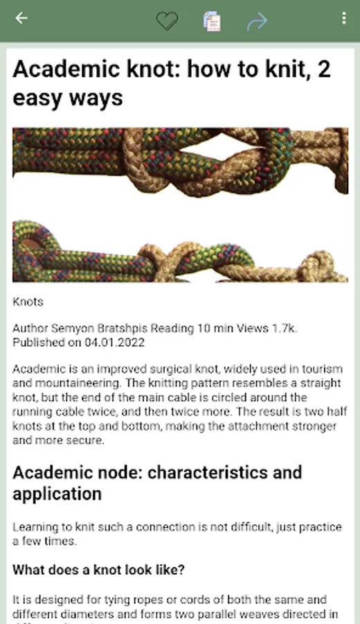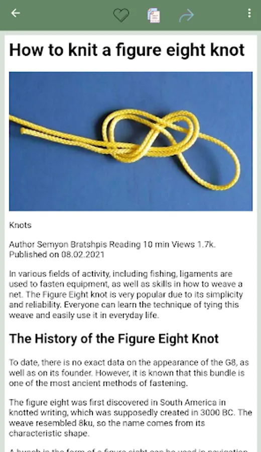 "Handbook how to knit knots" - your reliable assistant in the world of knots. Whether you need fishing knots, climbing knots, tie knots or sailing knots, our app will help you choose the right knot and learn how to knit it. The app has different categories of knots such as fishing knots, sailing knots, tourist knots and simple knots, which are useful in everyday life.