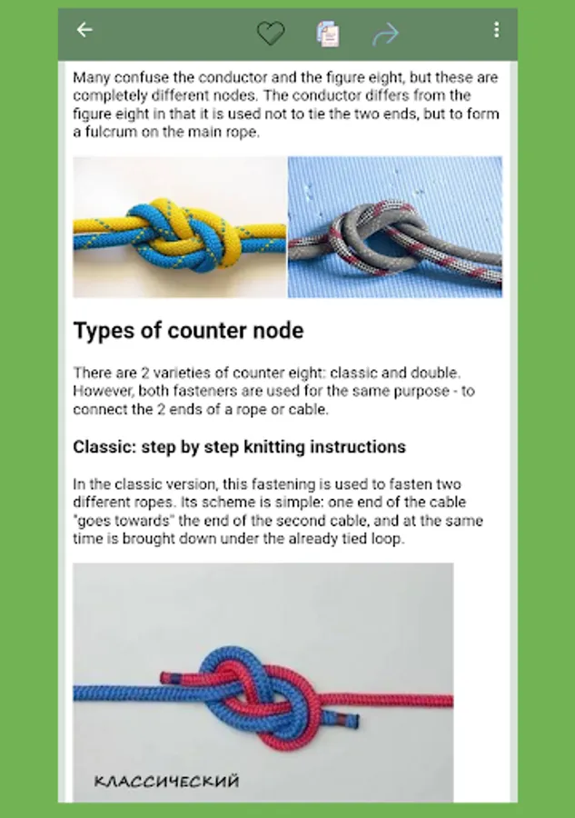 In our application you will find a description of different types of knots, as well as detailed instructions for knitting them. With our guide you will become a true professional in the art of knots!