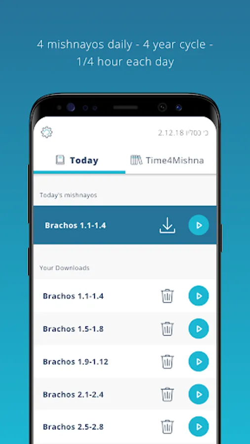 The Time4Mishna program involves learning four new mishnayos each day from Sunday through to Thursday, reviewing that week’s 20 mishnayos on Friday, and going over previous masechtos on Shabbos.