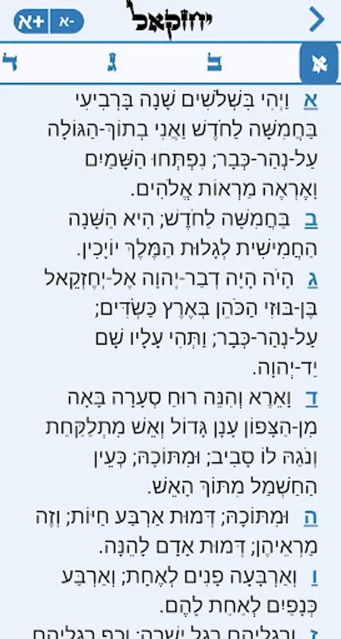At the Hebrew bible - Tanakh application you can explore the Hebrew language, read and navigate between "prakim" (chapters) and "psokim" (lines) of the bible in Hebrew with "nikud" (vocalization, punctuation, vowelization).