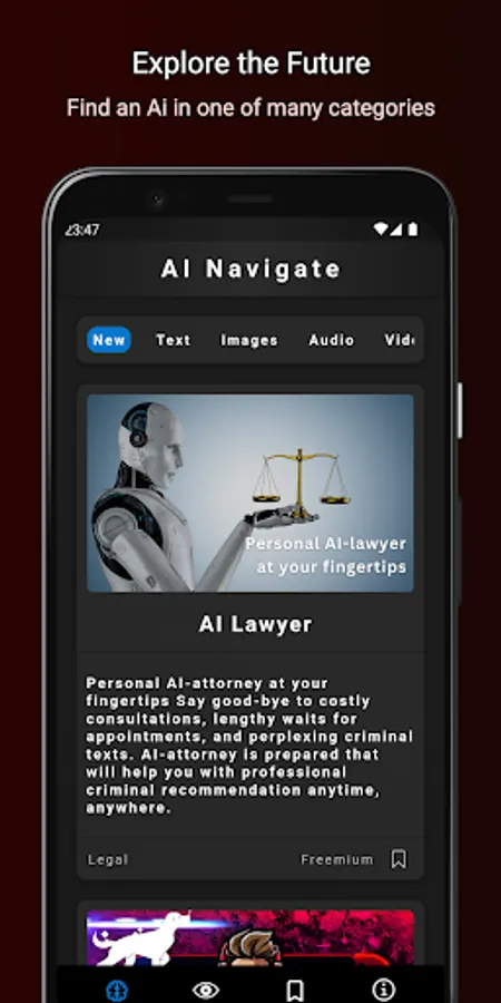Ai Navigate is the ultimate app for anyone curious about the world of artificial intelligence. Discover a variety of Ai websites in various categories such as Images, Video, Audio, Fun, Gaming, Coding, and much more with our app. Whether you're interested in new technologies, cool games, or innovative applications, Ai Navigate will always help you find the right pages.